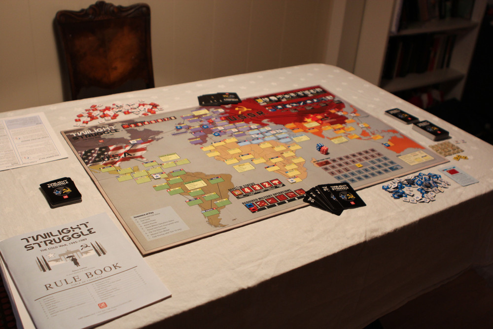Twilight Struggle er kanskje det beste strategispillet jeg har spilt noen gang. Det klarer å gjenskape stemningen og paranoiaen fra den kalde krigen perfekt. Jeg elsker at man ikke er i direkete konflikt, men hele tiden prøver å posisjonere seg og ta små seire her og der samtidig som man må holde et øye med motstanderen og forsøke å sabotere for ham hvis han blir for kraftig. Måten spillet klarer å blande inn faktiske historiske hendelser inn i spillforløpet gjør at det føles både realistisk og lærerikt. Kortene man trekker i starten av hver runde bestemmer fokuset du skal ha og taktikkene du kan bruke, og gjør at spillet føles friskt og nytt hver gang til tross for at hendelsene på kortene er svært spesifikke.