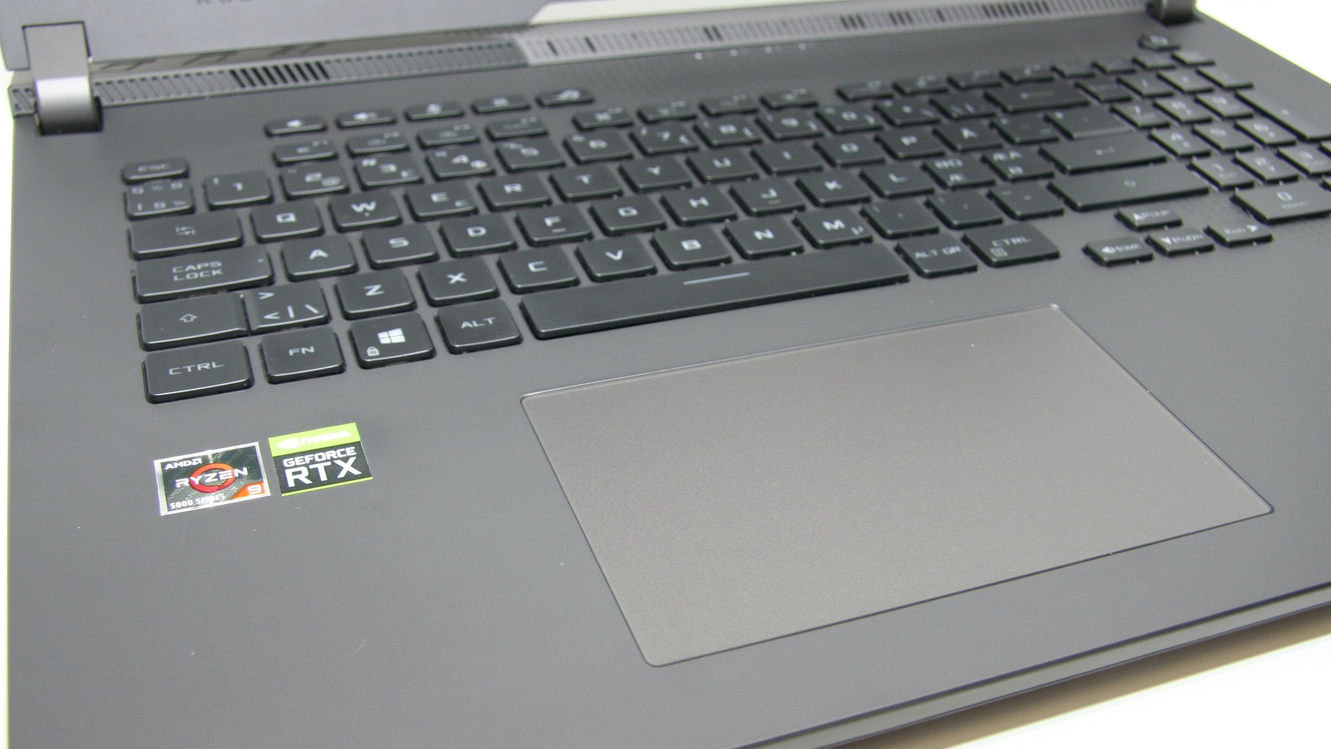 Ifølge Asus har de oppgradert pekeplaten fra tidligere modeller i STRIX-serien. Denne er blitt en del større. Den oppleves stort sett som fin i bruk, men vi sliter litt med responsen fra tid til annen. Vi må litt for mange ganger trykke en gang ekstra for å få i gang musepekeren eller få registrert et klikk. Dette kan være vi har fått et «mandagseksemplar», men vi håper uansett Asus følger opp dette.