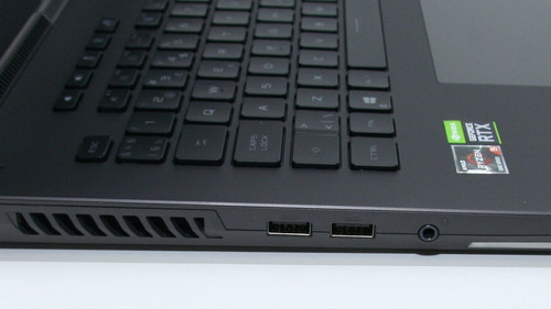 På venstresiden av maskinen er det plassert to USB-A (3.2 Gen 1), samt en kombinert 3.5 mm minijack. Her vil det alltid være en mulighet for at dere som bruker ekstern mus på venstre side av maskinen kan oppleve at ledninger fra USB-portene her kommer i veien. Dette er likevel den vanligste plasseringen av ekstra USB-porter, så her gjør ikke Asus noe direkte feil.