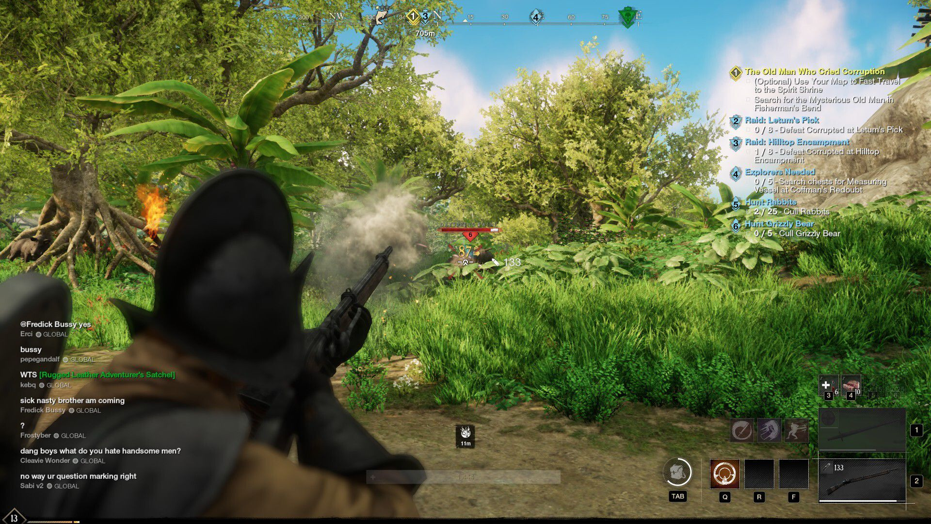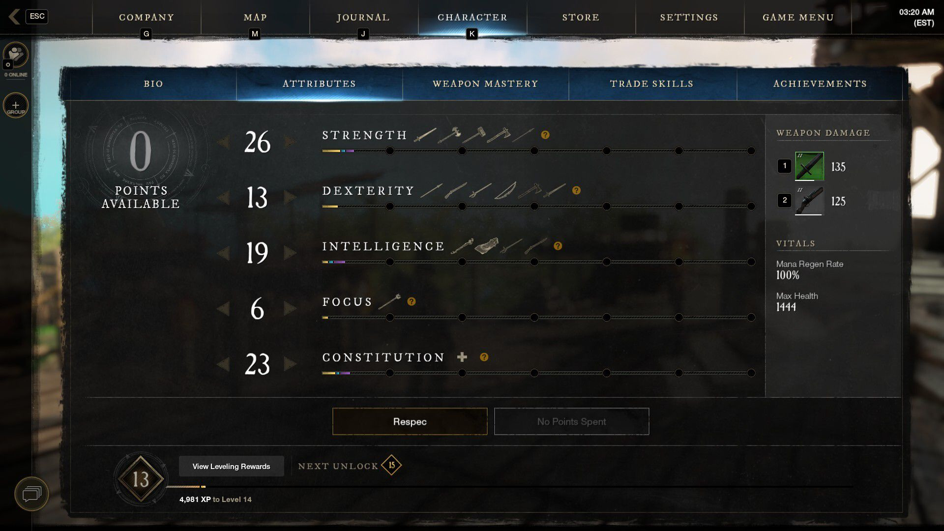 Jeg skal si at New World gjør noen utrolig kule ting jeg setter svært stor pris på, som få andre spill også gjør. Jeg digger at jeg kan se alt av utstyr jeg har på på en og samme tid, slik at mitt sverd, skjold og bue eller gevær vises på figuren min samtidig. Det er mange kule variasjoner av våpen og rustninger her, og det er nokså enkelt å tilegne seg nye klær med nye design – gitt at man går inn for å nå nye nivåer for å kunne lage det kuleste utstyret.