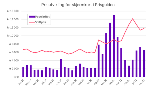 Espelien syns det er verd å merke seg at prisnivået i snitt låg på rundt 6000 kroner frå januar 2019 fram til september 2020. Den nye generasjonen med skjermkort sat ein ny prisstandard, seier han. Per september 2021 låg snittet på 11.800 kroner.