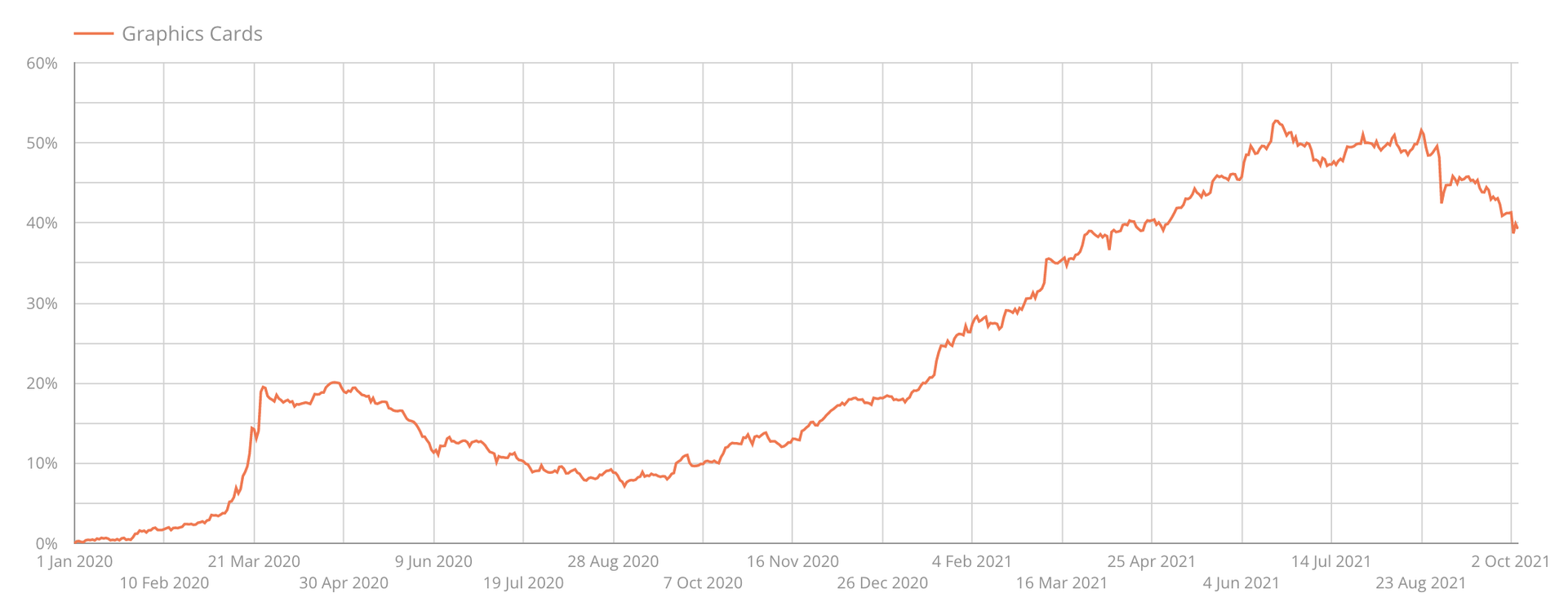 Dette kan nok ha ein del med introduksjonen av modellar som AMD Radeon 6900 XT og Nvidia RTX 3090, som er ein klasse over dei tidlegare toppskjermkorta – med endå høgare pris. Det har vore nokre slike kort i tidlegare generasjonar, som Nvidia sin Titan-serie, men dei har ikkje vore på langt nær like populære. Dette har nok difor løfta snittprisen ein del, spesielt då dei nye skjermkorta har kome i langt fleire tredjepartsvariantar.