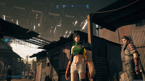 Det kommer kanskje ikke som noen overraskelse at Yuffie skiller seg fra resten av gjengen vi er blitt kjent med. Hun er tross alt – og ja, jeg mener «tross alt» er en riktig beskrivelse her – en 16 år gammel jente med glimt i øyet som ikke tar dritt fra noen. At hun ikke passer inn i denne i utgangspunktet mørke byen er åpenbart med en gang, men så har også Midgar blitt en god del lysere enn byen var i 1997 - og Sector 7 virker mer avslappet enn i hovedspillet selv. Yuffie oppfører seg som om verden her hennes scene, og er like naiv som hun er en fanatisk forkjemper for Wutais selvstendighet og Shinras og Midgars svekkelse. Wutai har nemlig tidligere kriget mot Midgar, og Yuffie er i byen for å hevne nasjonen sin.